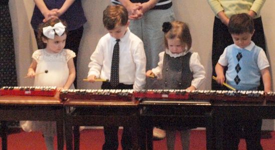 The children will learn to play songs on xylophones and recorders. They will sing a variety of songs from the Suzuki repertoire as well as traditional folk songs. Each child is allowed to progress at their own pace. The children have the opportunity to perform for their peers in a supportive and relaxed environment. Preliminary music theory games are introduced and beginning steps on piano, violin and guitar are a part of this fun filled music class.
